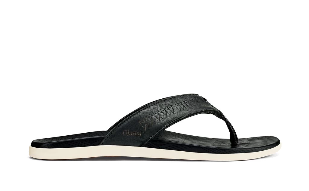 The Hawai’iloa Kia Ihu is a carefully crafted sandal designed to celebrate the legendary Hawai’iloa voyaging canoe. With a soft, sheep nubuck leather straps and a comfortable toe post, the laser-etched Detail s symbolize the collaboration of cultures, while the premium leathers and lower profile offer a clean look and comfortable feel. F E A T U R E S Embroidered upper logos, laser footbed Detail , outsole siping and medium weight decorative stitching. Features: 4 hand stitches at toe badge inspired by Hawaii’loa lashings. U P P E R Soft nubuck leather upper with a microfiber lining and a soft, comfortable nylon toe post. Laser-etched Detail s on the strap and embossed sailcloth texture at the toe badge. F O O T B E D Anatomical molded Pu footbed with a lower profile for a modern look and feel. Covered with a premium full-grain leather and laser-etched with Hawai’iloa voyage artwork. O U T S O L E Non-marking rubber outsole, razor siped for added traction on wet surfaces, and leather inlay. / Mens Sandals Hawai’iloa Kia Ihu in Black / 8 / Nylon / Olukai